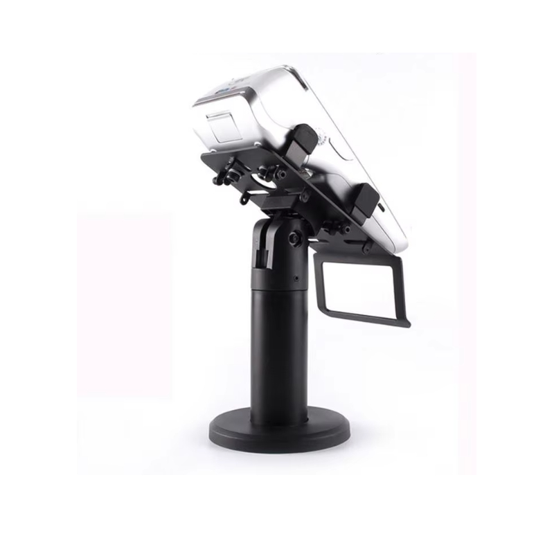 Stojan má kovový nastaviteľný držiak zariadenia a plastovú nohu.